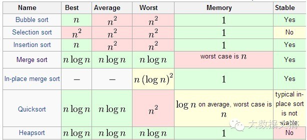 最后,堆排序算法使用一个优先队列降低数据的查找时间,它也是一种就地排序算法,同样也是不稳定的排序算法。